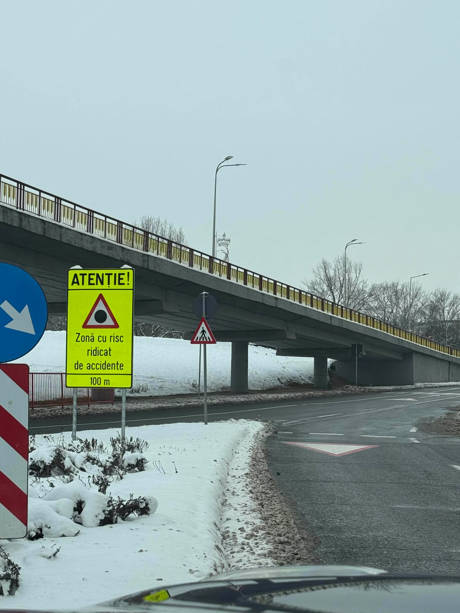 Șoferii sunt sfătuiți să reducă viteza și să acorde o atenție sporită la apropierea de această zonă.