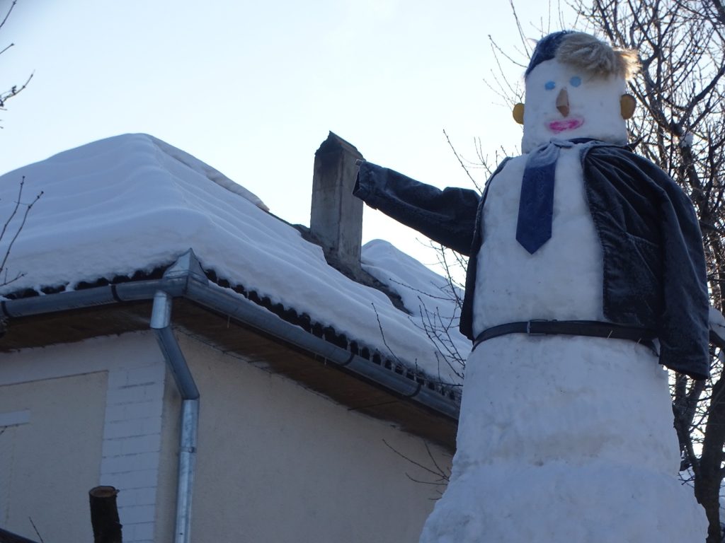 Nu este pentru prima dată când localnicii din Tarna Mare dau dovadă de imaginație. În anii trecuți, același om de zăpadă a fost realizat sub forma unui soldat pregătit de război.