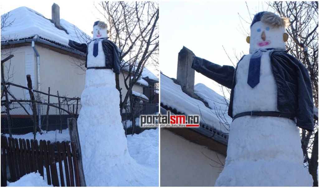 Surpriză neașteptată! Donald Trump a ajuns în județul Satu Mare! O apariție neașteptată a stârnit zâmbete și curiozitate în județul Satu Mare, la Tarna Mare. Nu este vorba despre o vizită oficială, ci despre un om de zăpadă uriaș, construit de localnici, care anul acesta a fost „transformat” chiar în… Donald Trump.