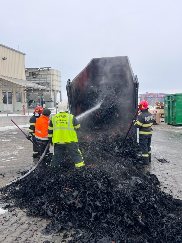 Incendiul s-a manifestat la un container ce conținea aproximativ 15 m³ de deșeuri de cauciuc rezultate în urma procesului de producție, existând posibilitatea de propagare a incendiului la hala de producție din proximitate. Intervenția a fost una amplă, fiind necesară golirea completă a acestuia, cu sprijinul unui autocamion dotat cu braț hidraulic, pentru identificarea și eliminarea eventualelor focare ascunse.