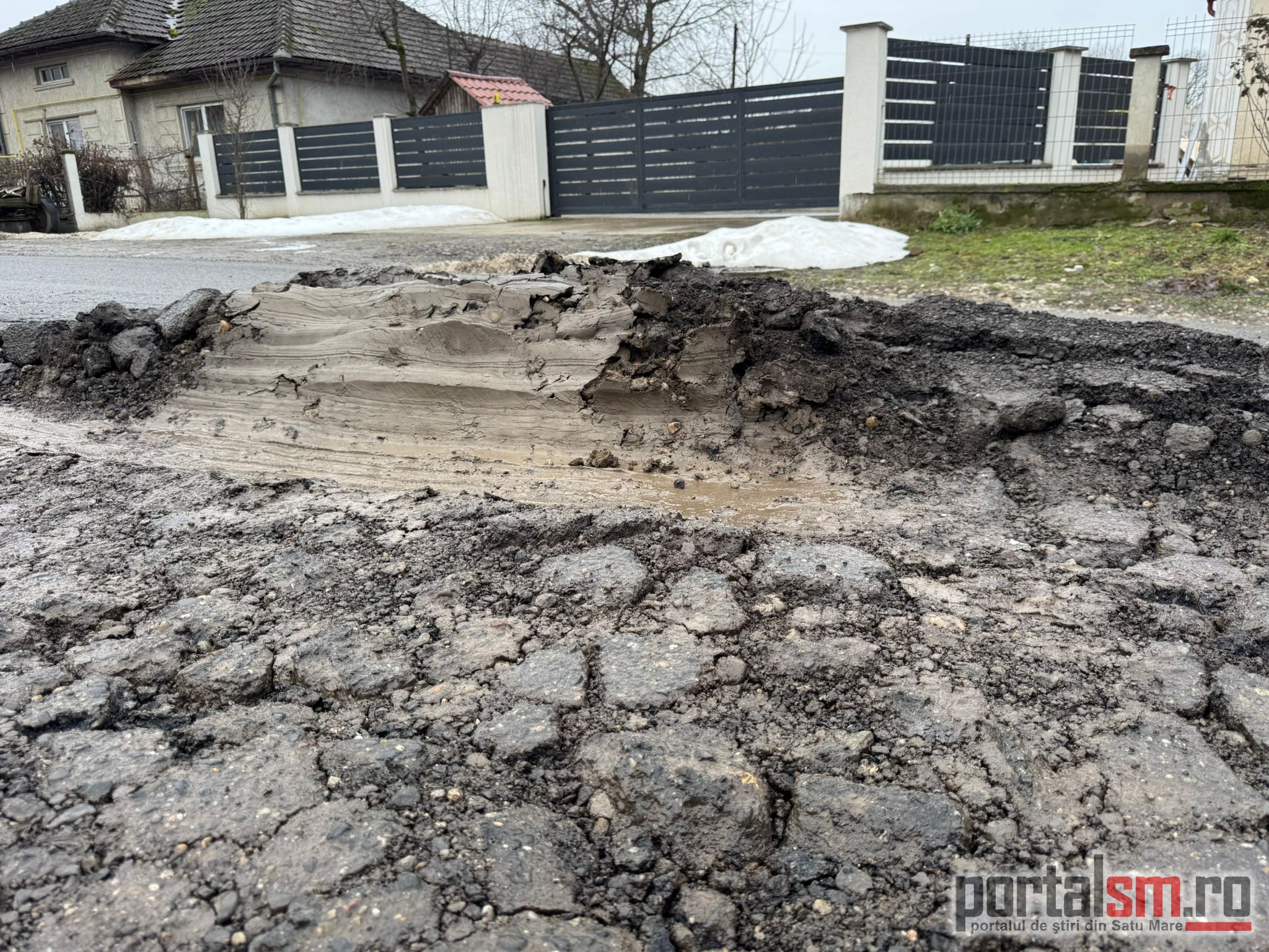 Asfalt dezastru în județul Satu Mare. Un tronson de drum din localitatea Pomi, județul Satu Mare, a devenit imposibil de circulat din cauza stării extreme a carosabilului. Asfaltul este atât de degradat încât s-a adunat sub forma unei grămezi compacte chiar în mijlocul drumului, formând un adevărat obstacol rutier.