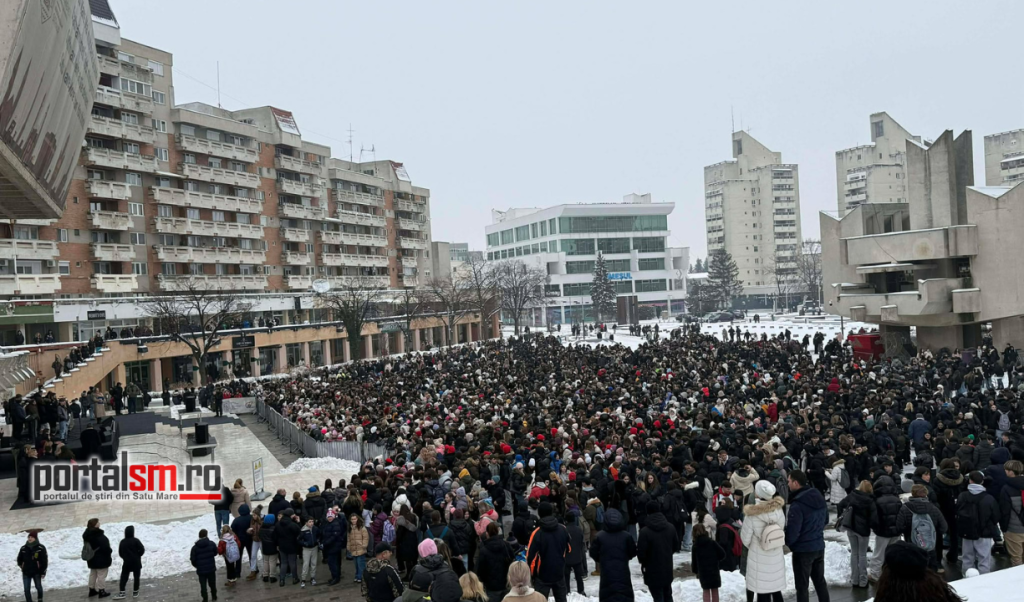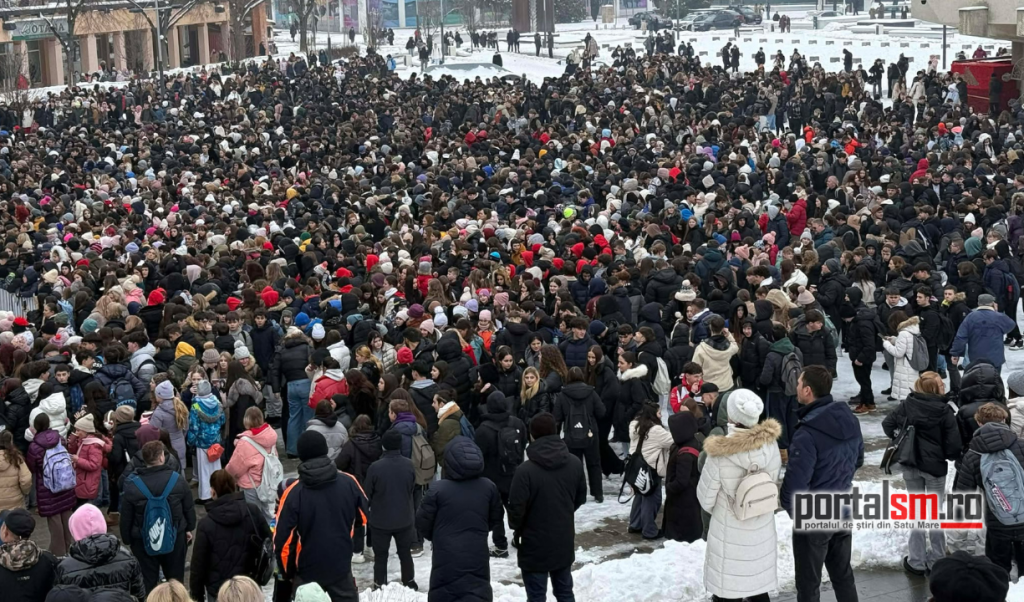 Piața 25 Octombrie din Satu Mare s-a transformat, joi, 15 ianuarie, într-o scenă uriașă de poezie, unde mii de elevi au adus un omagiu impresionant poetului național Mihai Eminescu, cu ocazia Zilei Culturii Naționale.