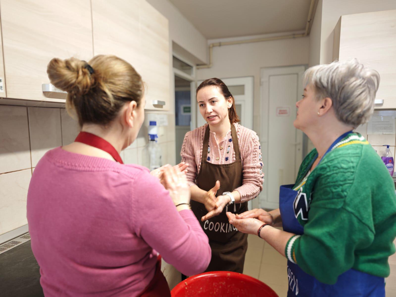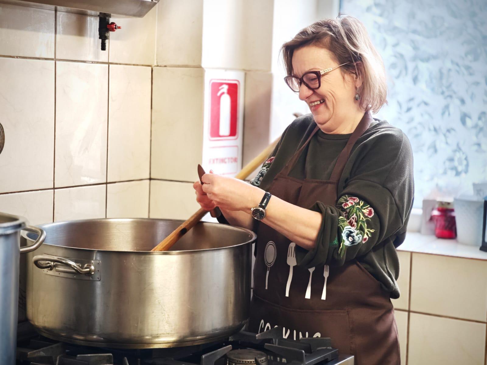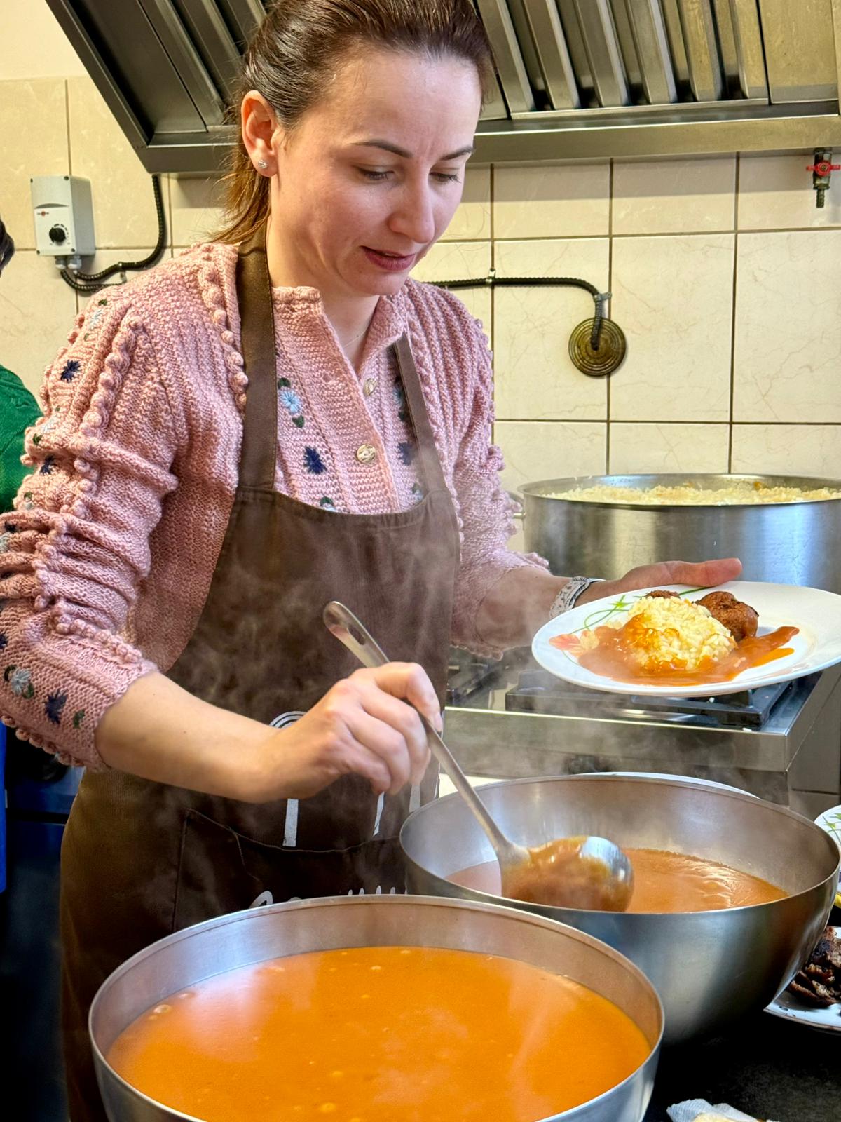 „Coordonatorii noștri se înscriu din timp, la fel și echipele de voluntariat, astfel încât știm exact cine va fi prezent în fiecare zi. Joi, de exemplu, ziua de gătit începe la ora 13:30. Se distribuie sarcinile și se începe pregătirea efectivă. După ce mâncarea este gata, este transportată la Adăpostul de Noapte”, explică Simona Gavrilă.