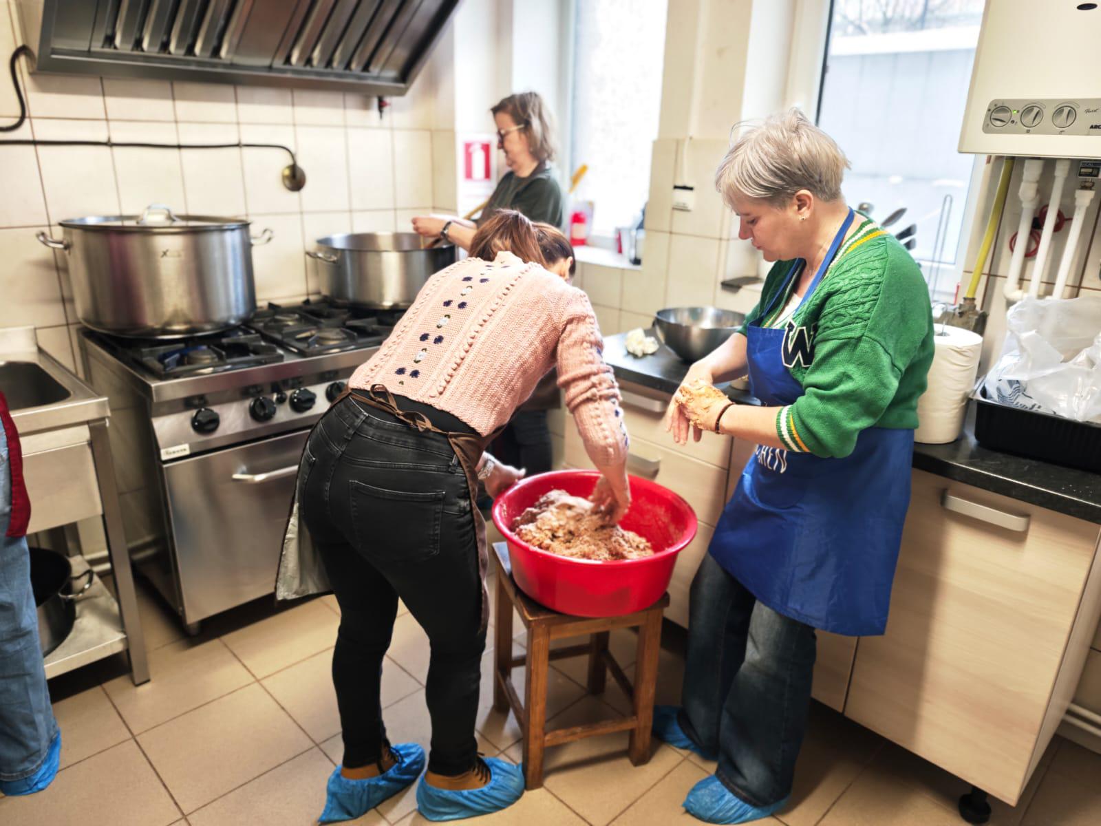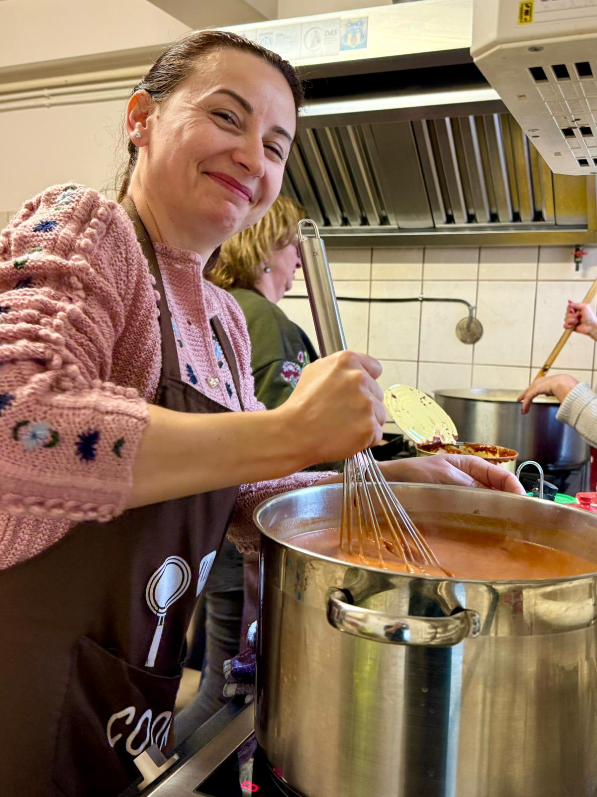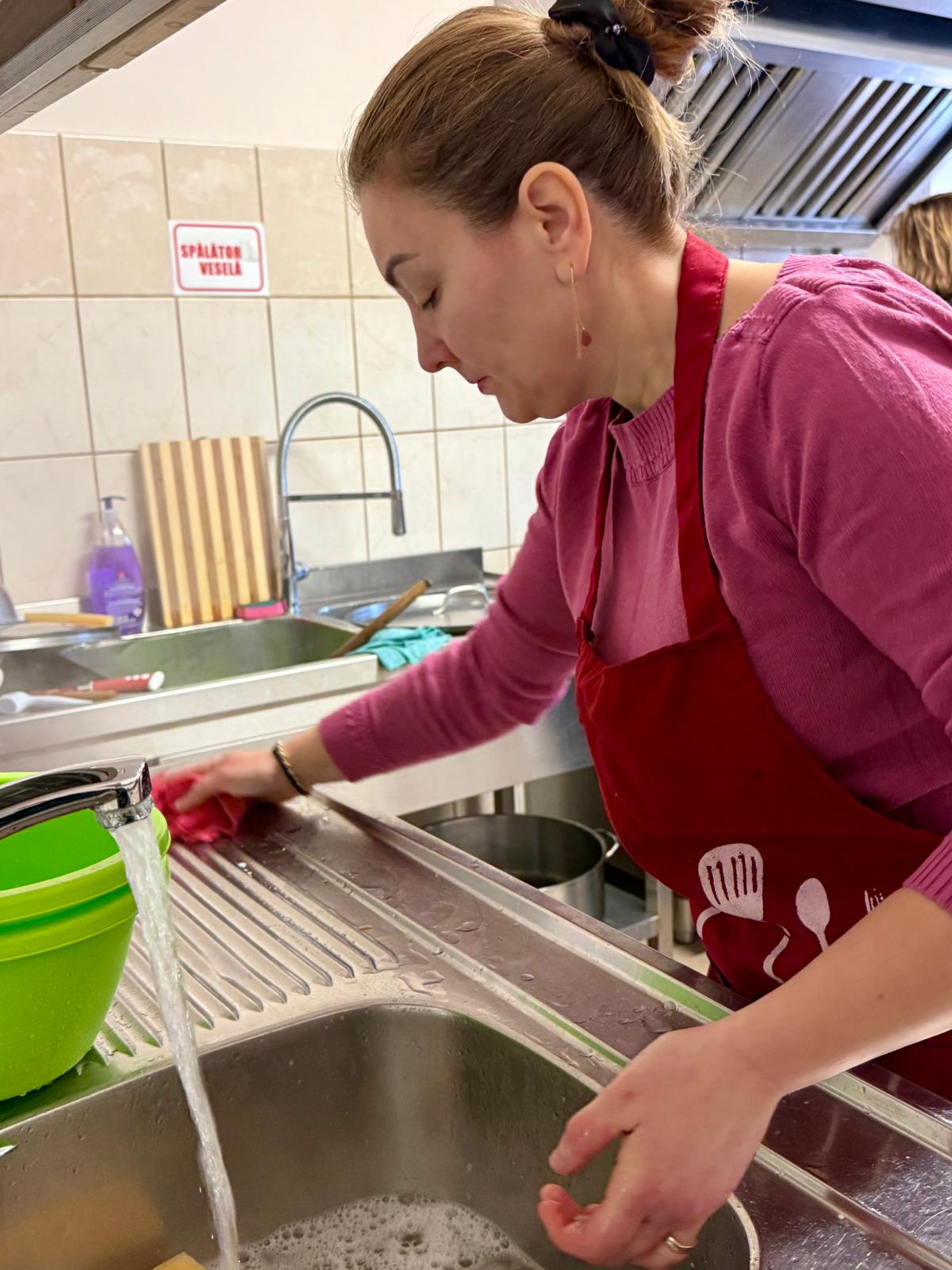 „Coordonatorii noștri se înscriu din timp, la fel și echipele de voluntariat, astfel încât știm exact cine va fi prezent în fiecare zi. Joi, de exemplu, ziua de gătit începe la ora 13:30. Se distribuie sarcinile și se începe pregătirea efectivă. După ce mâncarea este gata, este transportată la Adăpostul de Noapte”, explică Simona Gavrilă.