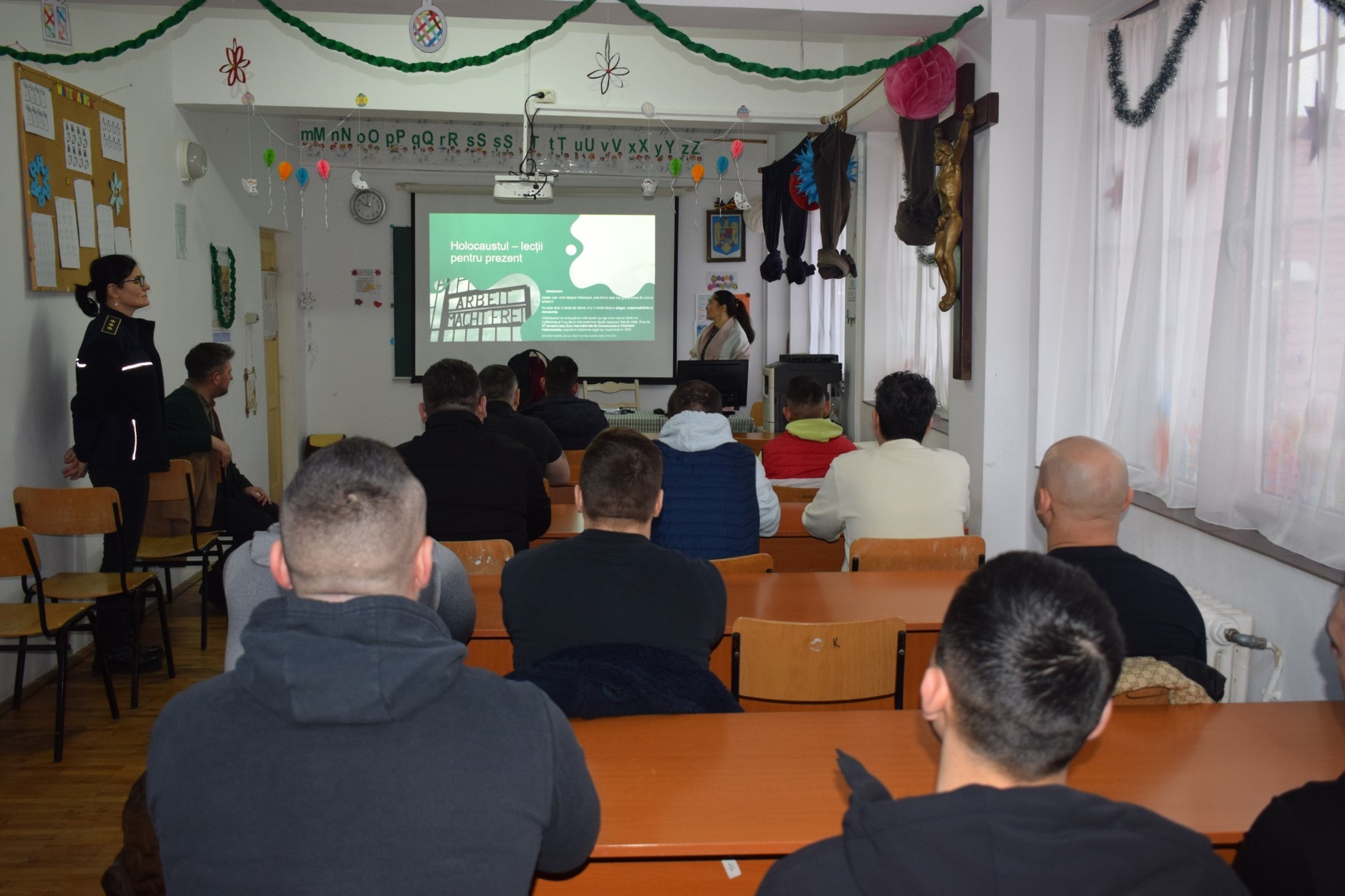 Zi de reculegere la Penitenciarul Satu Mare. Victimele Holocaustului, comemorate prin educație și memorie. Astăzi, 27 ianuarie, la Penitenciarul Satu Mare, au fost organizate activități dedicate comemorării victimelor Holocaustului, în semn de respect și aducere-aminte a uneia dintre cele mai tragice pagini din istoria omenirii.