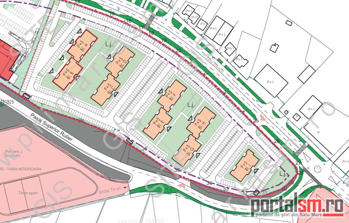 Regimul de înălțime al construcțiilor va fi diferențiat, de la parter până la P+5 etaje.