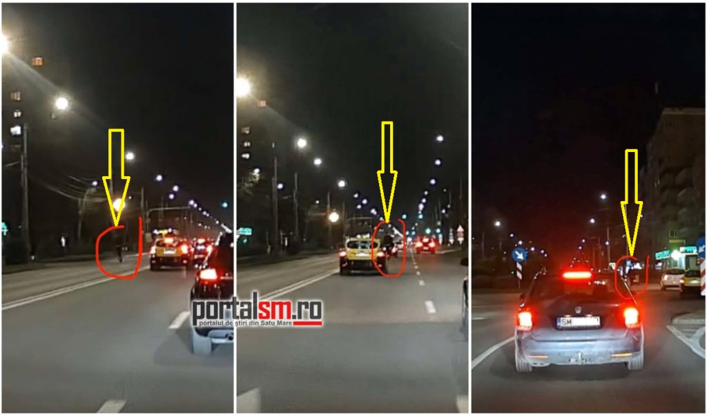 „Doresc să atrag atenția conducătorilor auto că trotinetele circulă și pe șosea în oraș. Tânărul se deplasa pe banda a doua, a intrat în sensul giratoriu printre mașini și nu avea nici vestă, nici cască”, a transmis sătmăreanca pentru PortalSM.