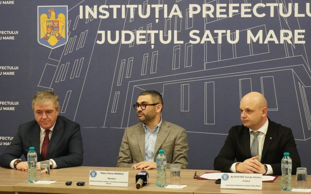 Ministrul Muncii, Familiei, Tineretului și Solidarității Sociale, Florin Manole, a efectuat, joi, 19 februarie, o vizită de lucru în județul Satu Mare, pentru a discuta proiectele sociale derulate la nivel local și oportunitățile de sprijinire a persoanelor vulnerabile.