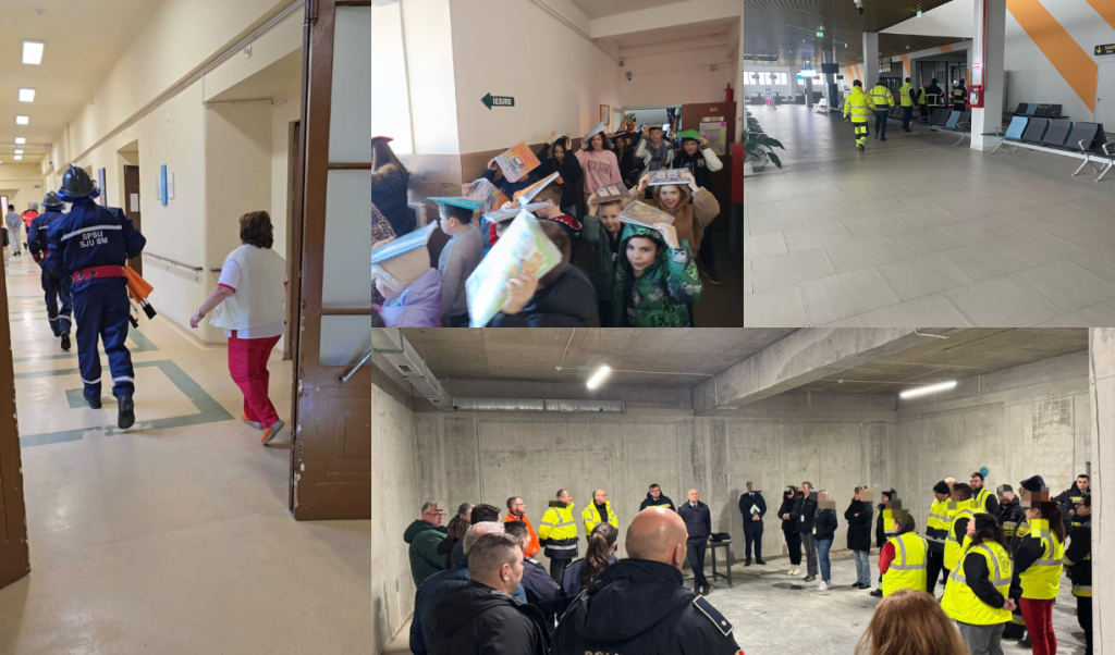 Au fost desfășurate patru exerciții de evacuare în unități de învățământ din municipiile Satu Mare și Carei, dar și trei exerciții dedicate personalului medical și auxiliar în cadrul: