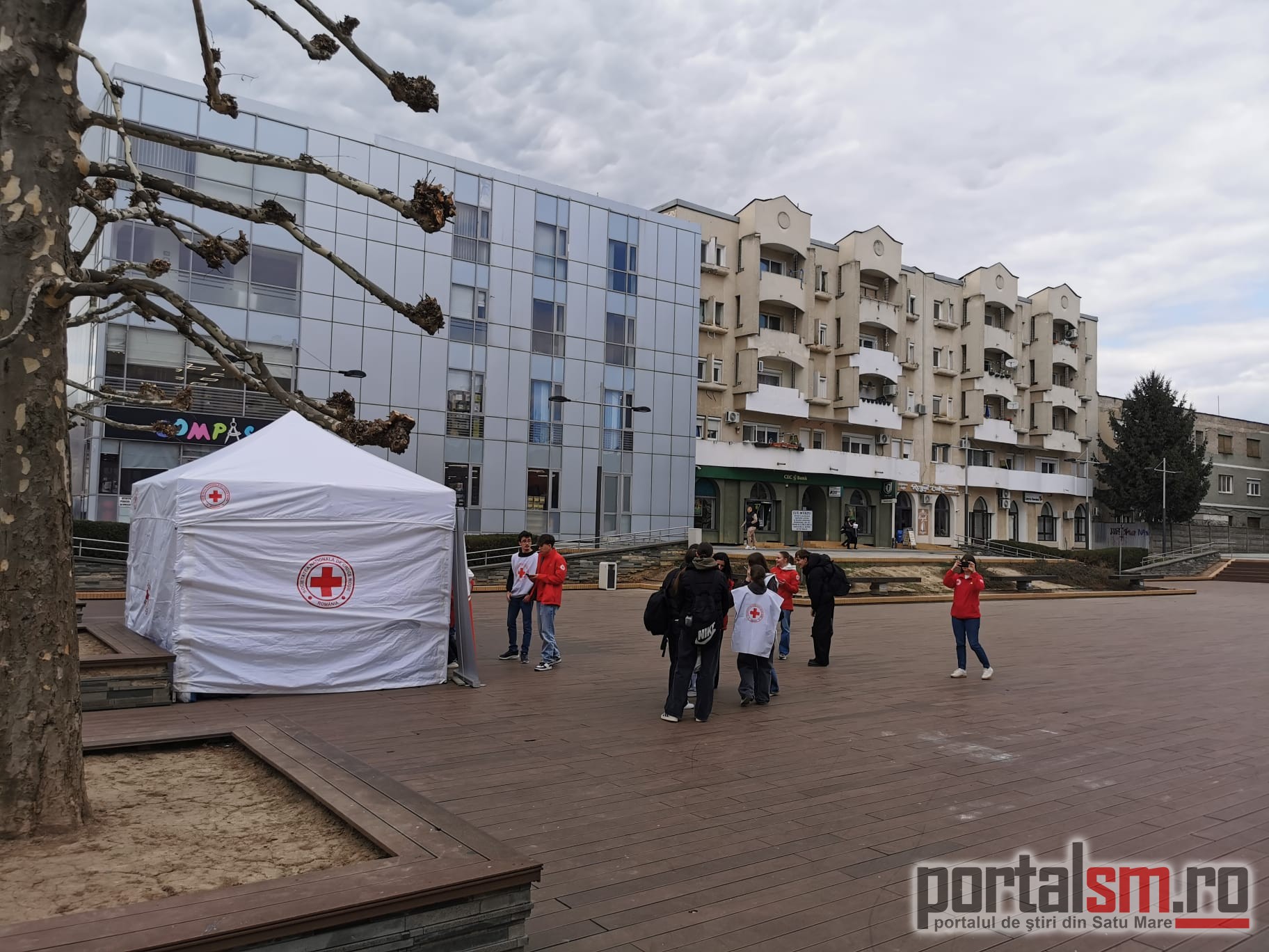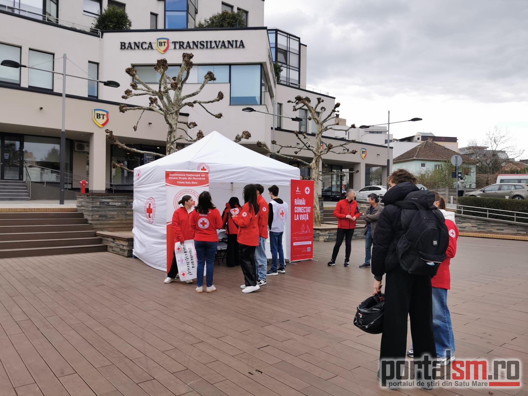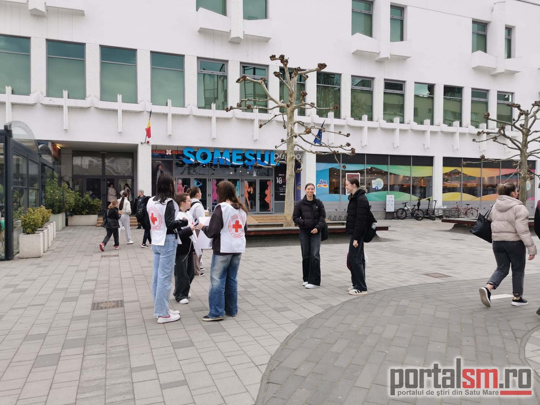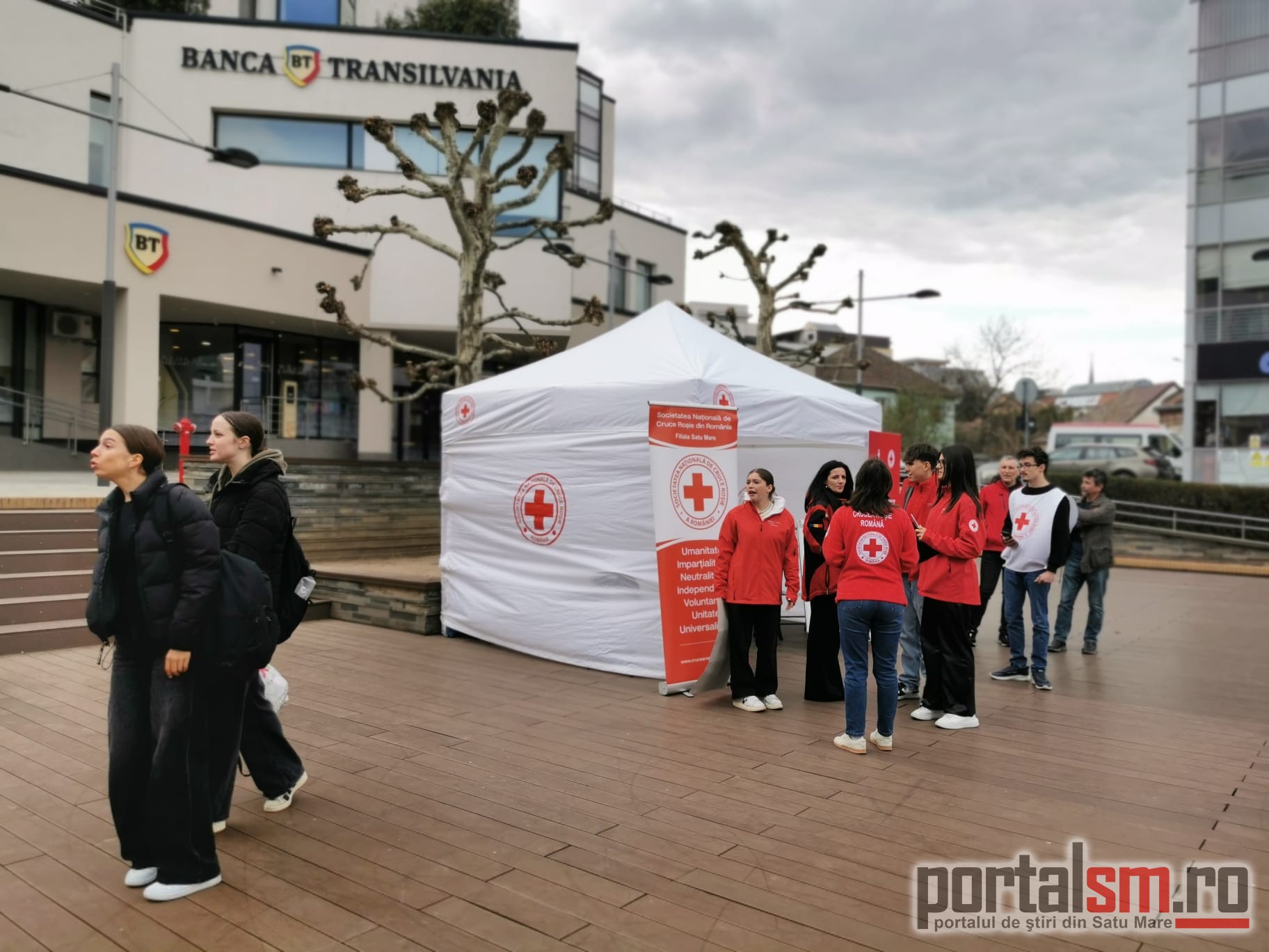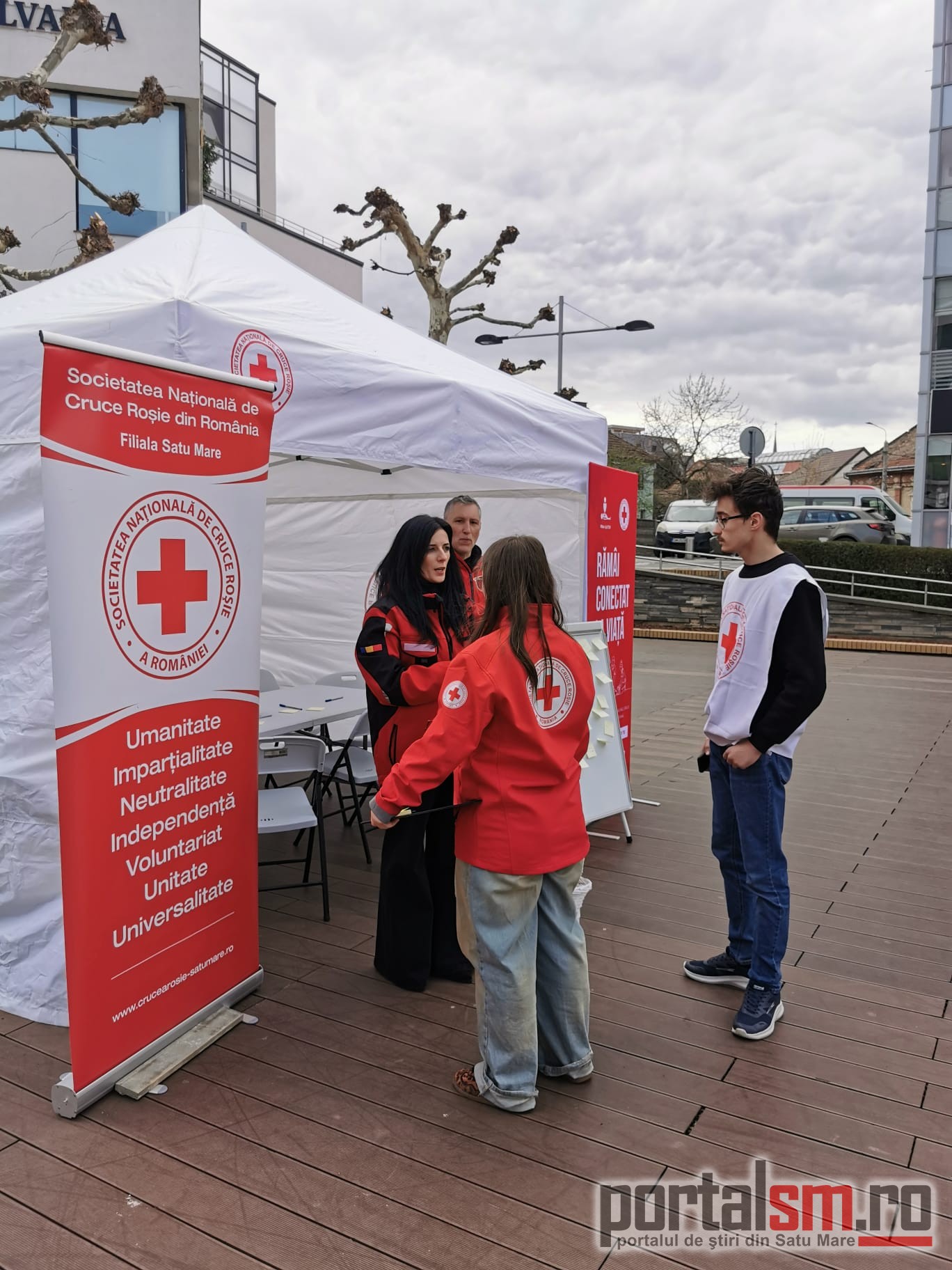 FOTO/VIDEO. „Ce te face fericit?” Voluntarii Crucii Roșii au stat de vorbă cu sătmărenii și au adus zâmbete în oraș