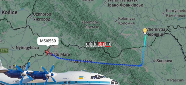 Un avion de transport de tip Antonov An-12BK, operat de compania ucraineană Motor Sich Airlines, a survolat, astăzi, vineri, 20 martie, zona de nord a României, trecând în apropierea municipiului Satu Mare, unde a atras atenția locuitorilor din cauza zgomotului puternic produs.