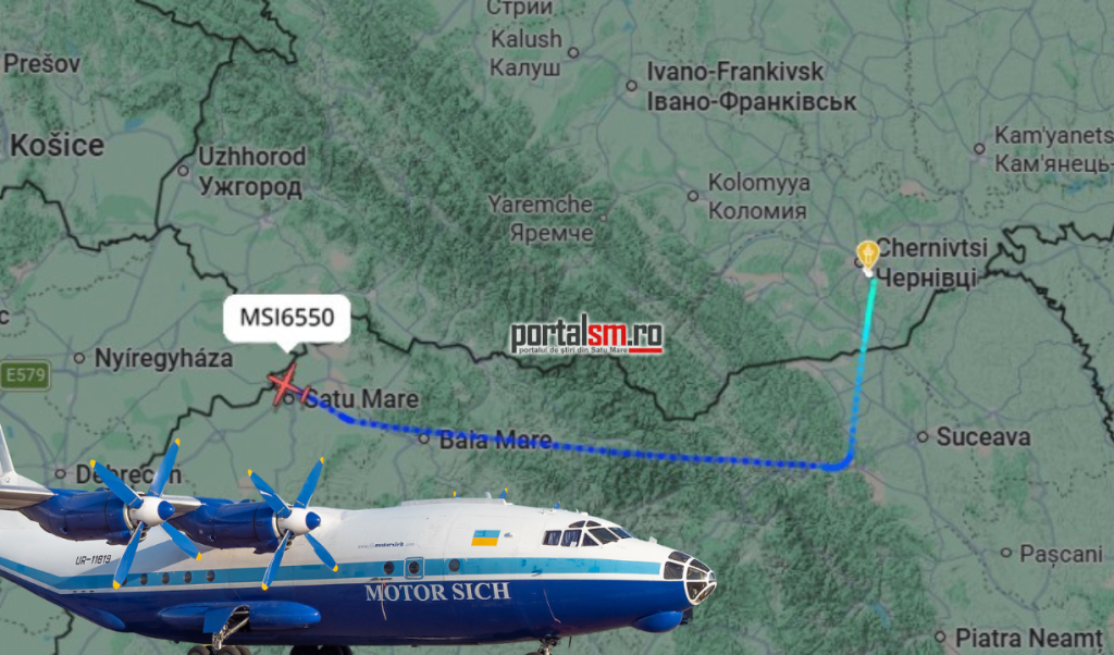 Un avion de transport de tip Antonov An-12BK, operat de compania ucraineană Motor Sich Airlines, a survolat, astăzi, vineri, 20 martie, zona de nord a României, trecând în apropierea municipiului Satu Mare, unde a atras atenția locuitorilor din cauza zgomotului puternic produs.
