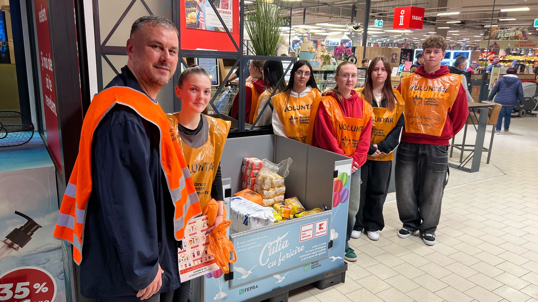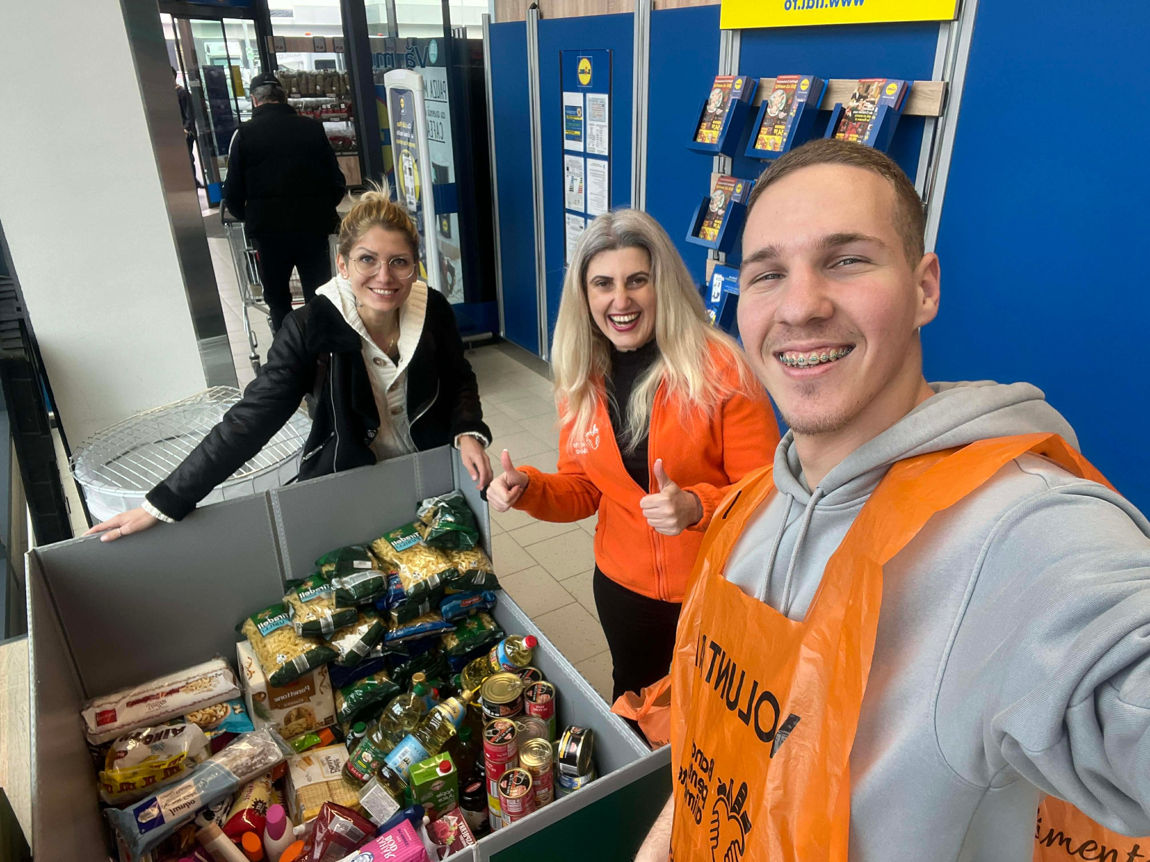 Sute de voluntari de toate vârstele, recunoscuți după vestele portocalii, sunt prezenți în magazine pentru a oferi informații și pentru a încuraja implicarea oamenilor. Ei sunt legătura dintre generozitatea comunității și nevoile reale ale celor aflați în dificultate. Acestea ajung, prin Rețeaua Băncilor pentru Alimente și ONG-urile partenere, la familii cu venituri mici, vârstnici singuri, copii din centre de zi sau plasament, mame singure, persoane fără adăpost și multe alte persoane vulnerabile.