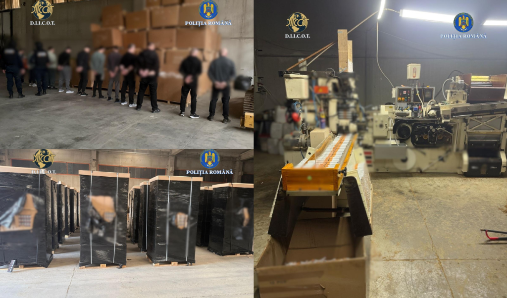 O fabrică ilegală de țigarete, aflată în plină funcțiune la periferia municipiului Timișoara, a fost descoperită astăzi de procurorii DIICOT, în urma unor percheziții desfășurate în județul Timiș. La acțiune au participat și polițiștii de frontieră din cadrul Serviciului Teritorial al Poliției de Frontieră Satu Mare, alături de polițiști specializați în combaterea criminalității economice și jandarmi, într-un dosar care vizează destructurarea unei grupări de criminalitate organizată implicate în producerea și distribuția de țigarete de contrabandă.