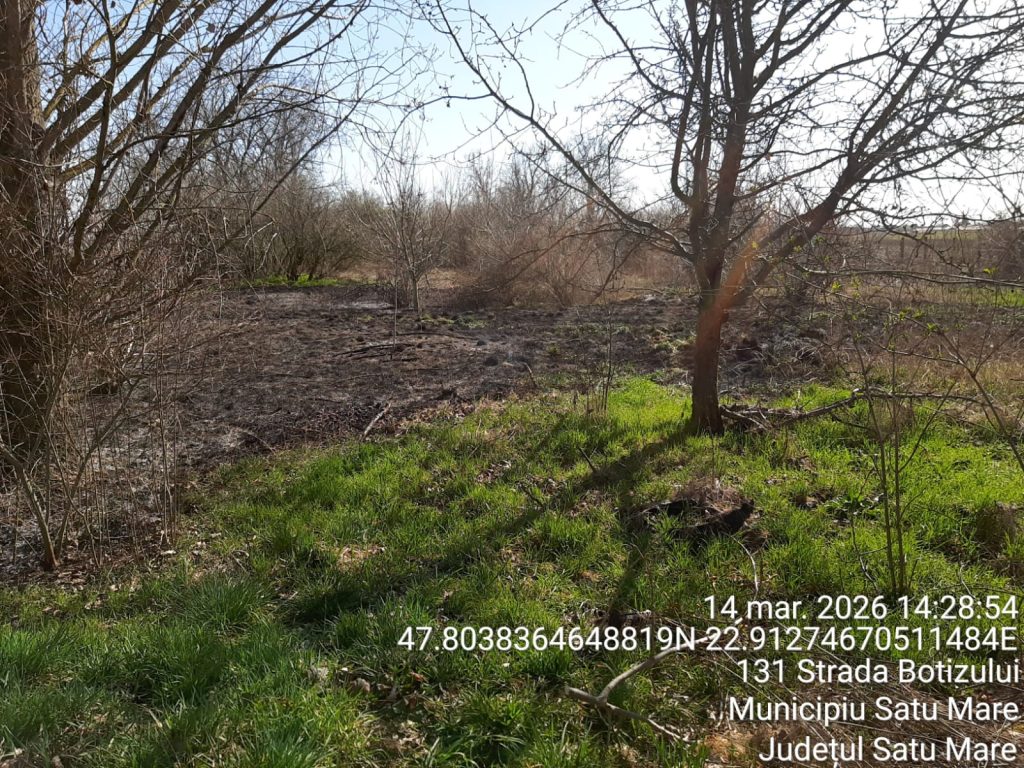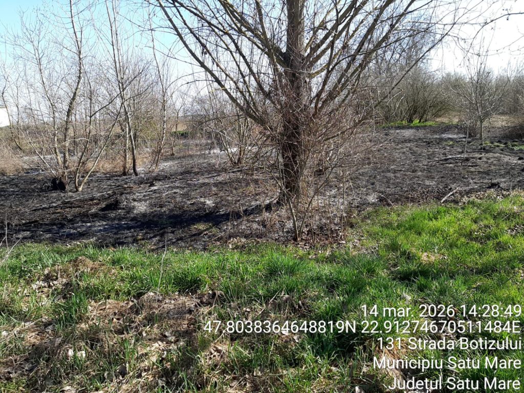 Un alt incendiu de vegetație uscată a fost semnalat în municipiul Satu Mare, pe strada Botizului, în apropierea unui service auto. La locul solicitării a intervenit un echipaj din cadrul Detașamentului de Pompieri Satu Mare, cu o autospecială de stingere și 5 cadre militare.