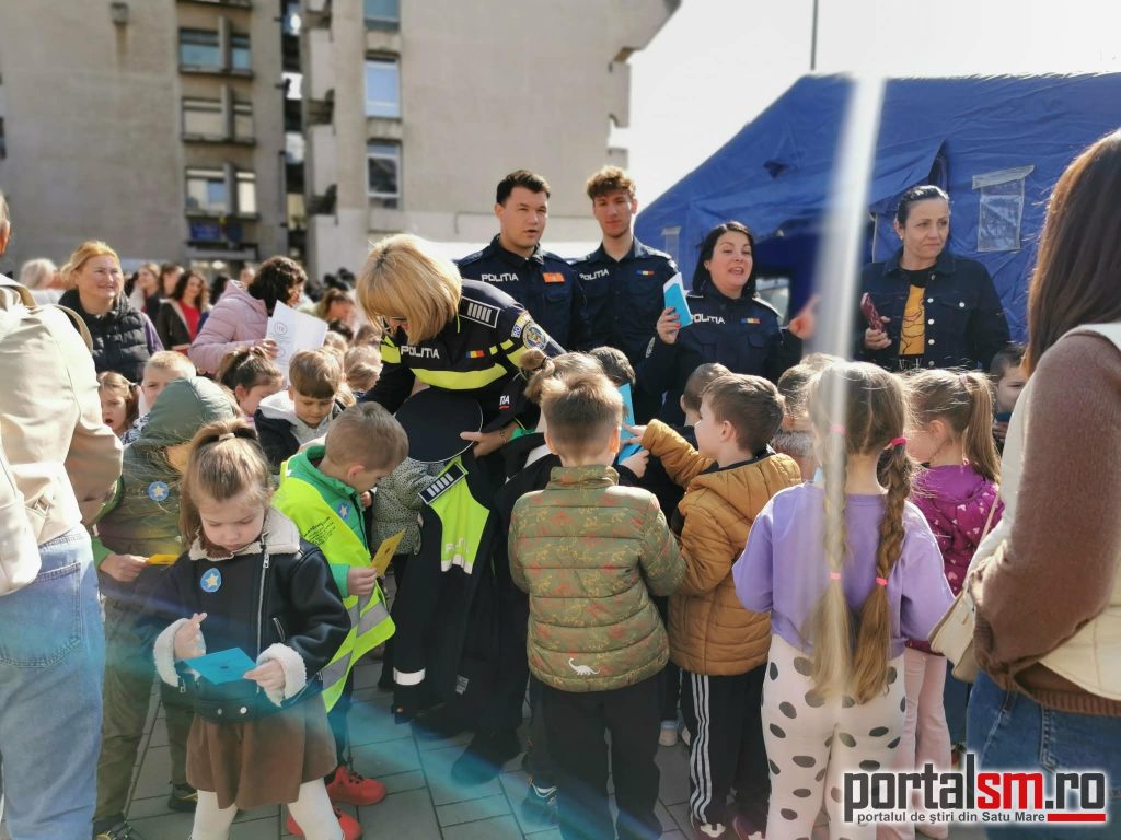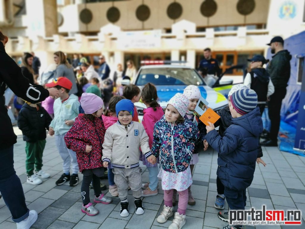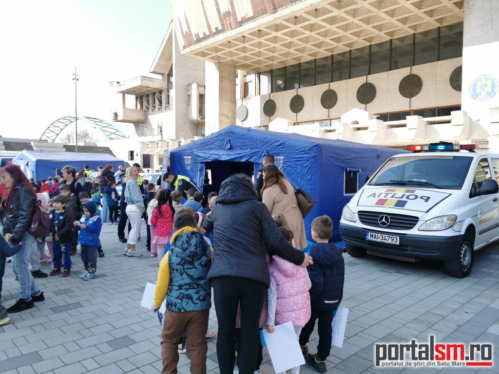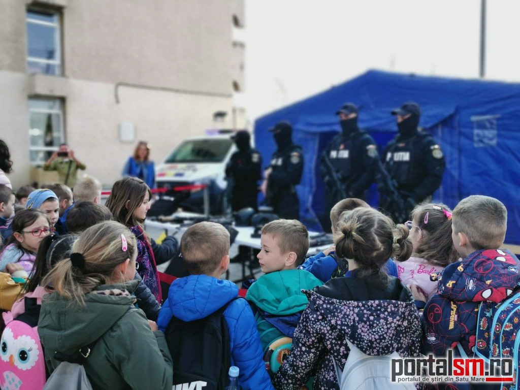 Miercuri dimineață, platoul din centrul orașului s-a transformat într-un adevărat punct de atracție, unde participanții au putut vedea de aproape cum arată munca polițiștilor.
