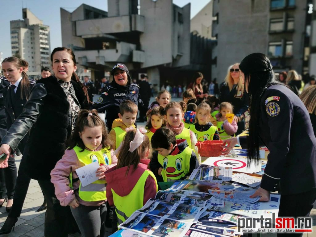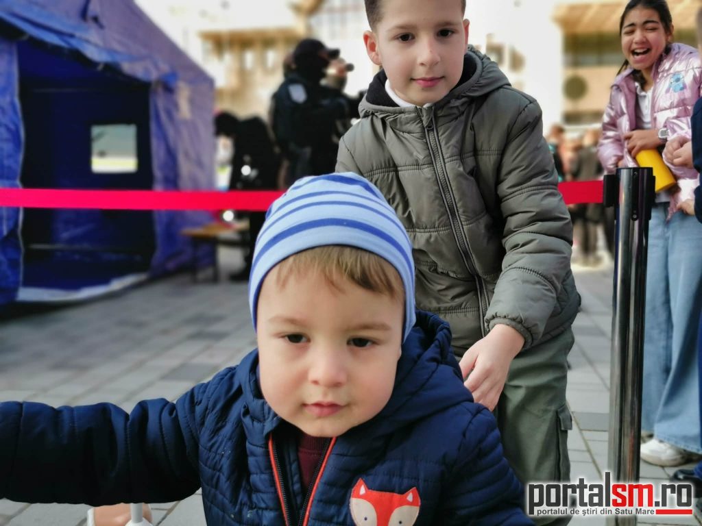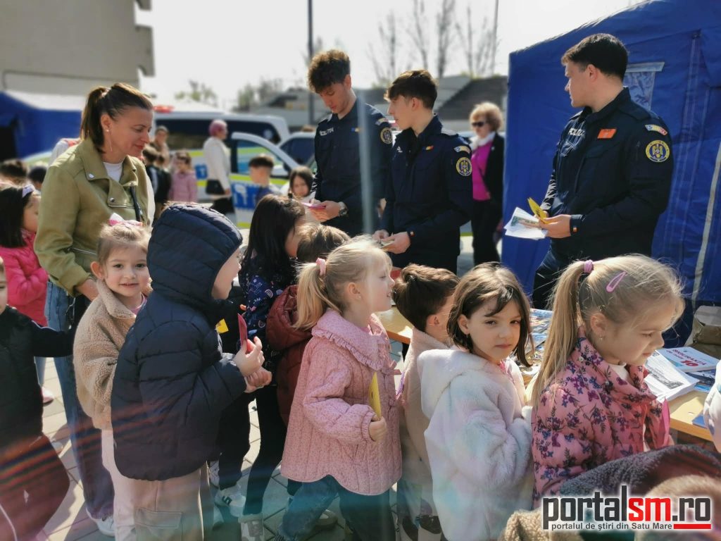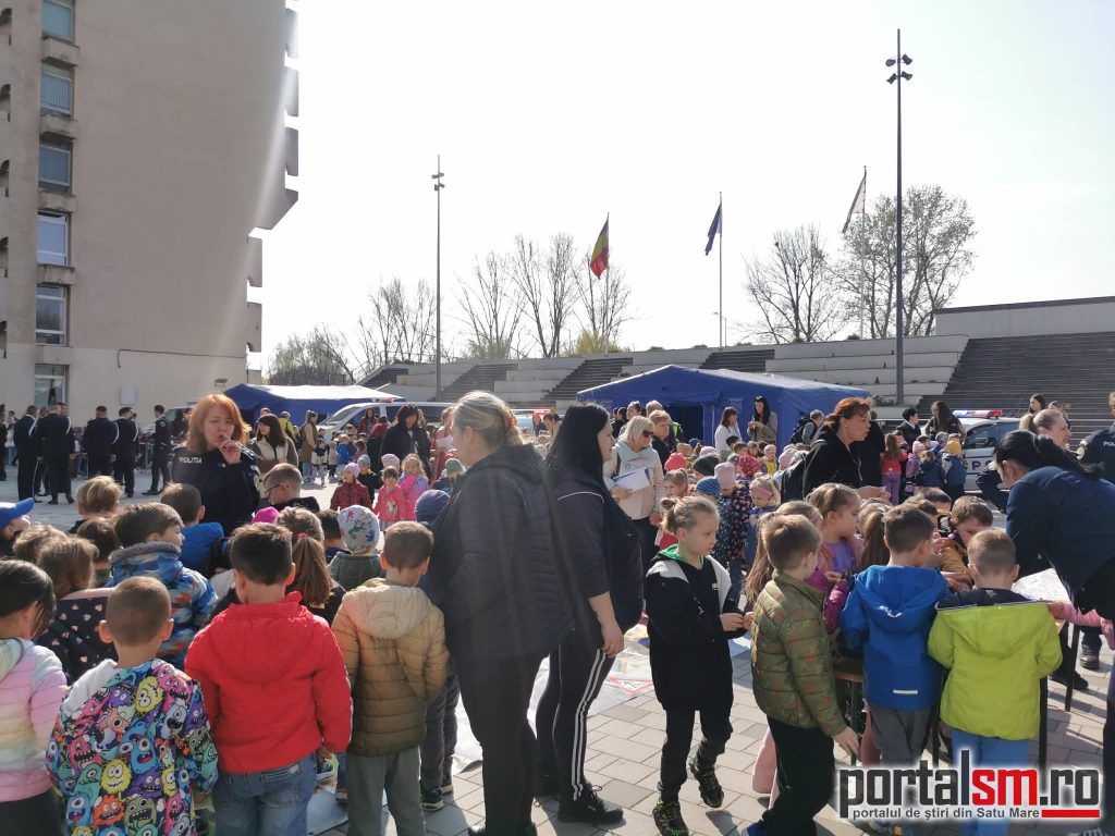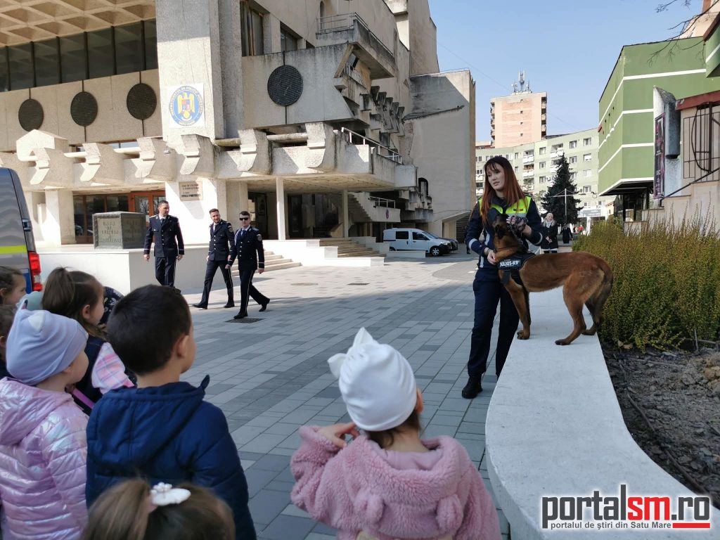 Miercuri dimineață, platoul din centrul orașului s-a transformat într-un adevărat punct de atracție, unde participanții au putut vedea de aproape cum arată munca polițiștilor.