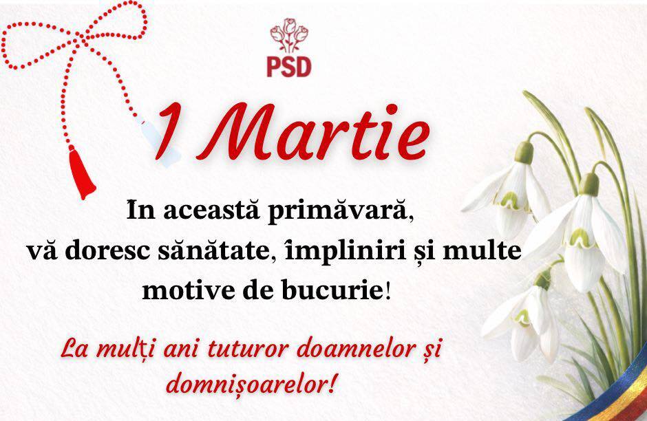 În urarea sa, parlamentarul le dorește femeilor „sănătate, împliniri și multe motive de bucurie” în această primăvară.