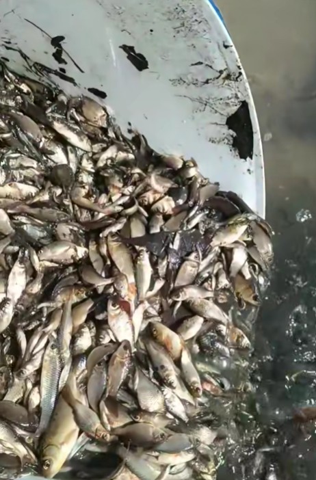Potrivit imaginilor filmate la fața locului, printre speciile salvate se numără caras, crap și babușcă.
