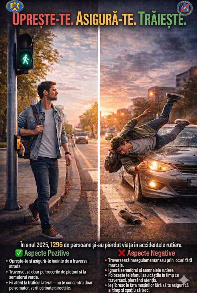 Conform Calendarului de acțiuni pentru reducerea riscului rutier în anul 2026 (ROADPOL/Direcția Rutieră/S.R SM), în săptămâna 23-29 martie, se va acționa în vederea impunerii respectării prevederilor legale de către pietoni pe raza județului Satu Mare.