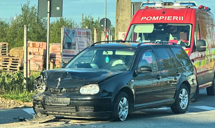 Un accident rutier a avut loc, în această dimineață, la coborârea de pe pasarela dinspre Botizului, unde un autoturism a fost serios avariat în partea din față.