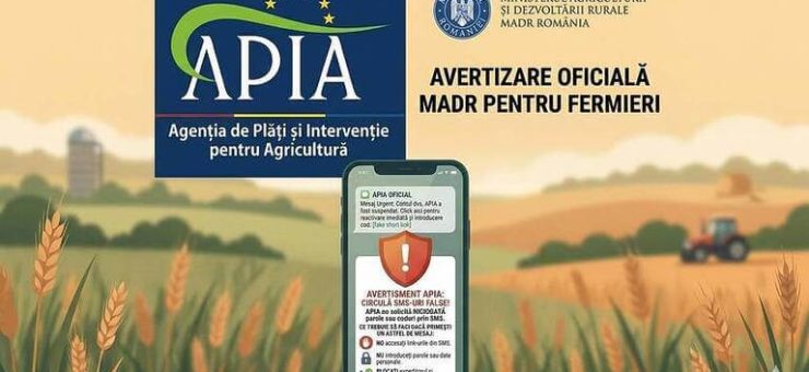 Mesajele conțin link-uri către un site neoficial (plata-apia.ro), fără nicio legătură cu APIA. Fermierii sunt sfătuiți să ignore aceste mesaje și să le șteargă imediat.