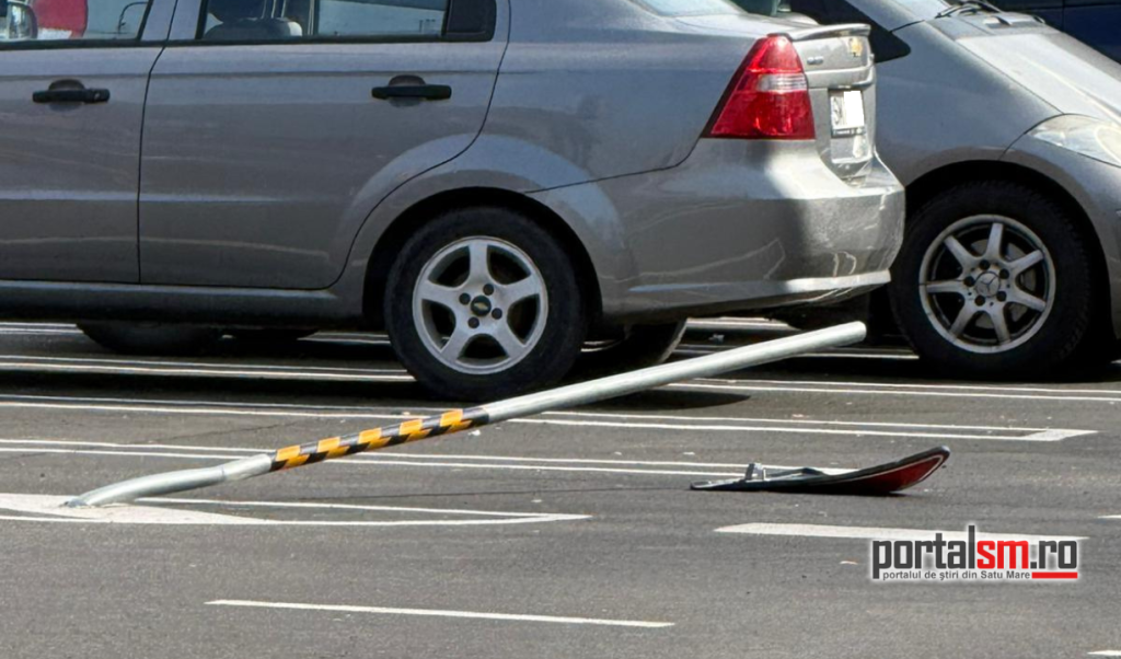 Un incident neobișnuit a avut loc, joi, 2 aprilie, în parcarea noului supermarket LIDL de pe bulevardul Lucian Blaga din municipiul Satu Mare, unde un șofer a reușit să doboare un indicator rutier… trecând pur și simplu peste el.