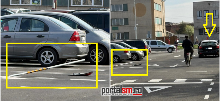 Indicatorul a fost distrus, iar un sătmărean a asistat la întreaga scenă: „A trecut peste indicator cu toată mașina, cu fața, de parcă indicatorul nici nu era acolo”, a spus acesta, pentru PortalSM.