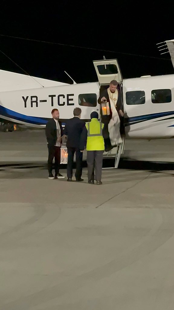 Lumina Sfântă de la Ierusalim a ajuns, în această seară, 11 aprilie, în Sâmbăta Mare, pe Aeroportul Internațional Satu Mare, unde a fost așteptată de sute de preoți și credincioși.