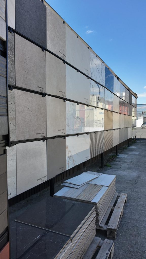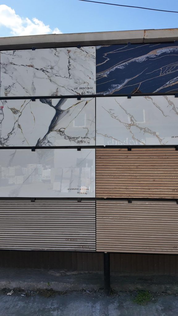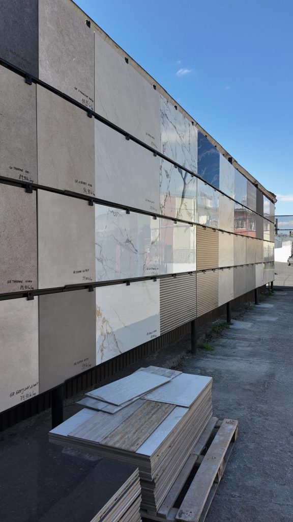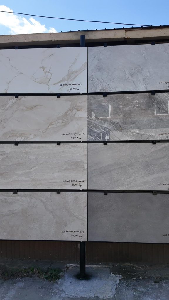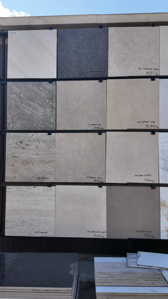 Potrivit reprezentanților depozitului, oferta include mii de metri pătrați de gresie în stiluri variate. Printre acestea se regăsesc finisaje cu aspect de marmură, beton, piatră naturală sau texturi inspirate din lemn.