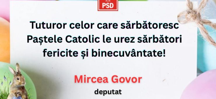 Președintele PSD Satu Mare, deputatul Mircea Govor, le urează sărbători fericite și binecuvântate tuturor celor ce sărbătoresc Paștele, în aceste zile!