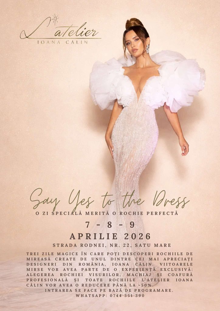 „Say Yes to the Dress” revine la Satu Mare cu cea de-a doua ediție. După succesul remarcabil al primei ediții, evenimentul „Say Yes to the Dress” revine la Satu Mare, în perioada 7–9 aprilie 2026, cu o nouă experiență dedicată viitoarelor mirese și pasionatelor de modă. Semnat de designerul Ioana Călin, un nume consacrat în creația vestimentară din România, evenimentul aduce în prim-plan eleganța, rafinamentul și accesul la rochii deosebite, create de-a lungul a peste 15 ani de experiență în domeniu.