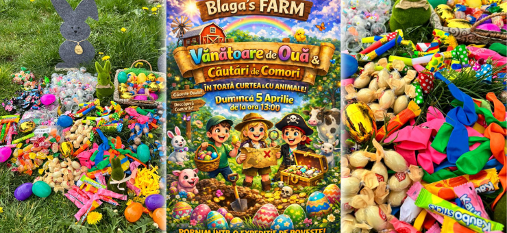 VIDEO. Vânătoare de ouă și căutare de comori la Blaga’s Farm, duminică, 5 aprilie!