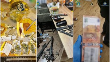 FOTO. Traficanți reținuți în județul vecin. Droguri, arme și bancnote false găsite la percheziții